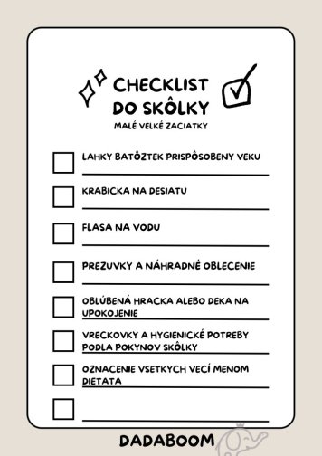(Tip: Tento checklist si môžete vytlačiť a mať ho na chladničke alebo uložiť v mobile.)